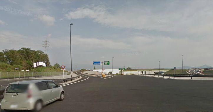 真中の「三島」の案内に従って行けば、道なりに自動車道(無料)入って行く。