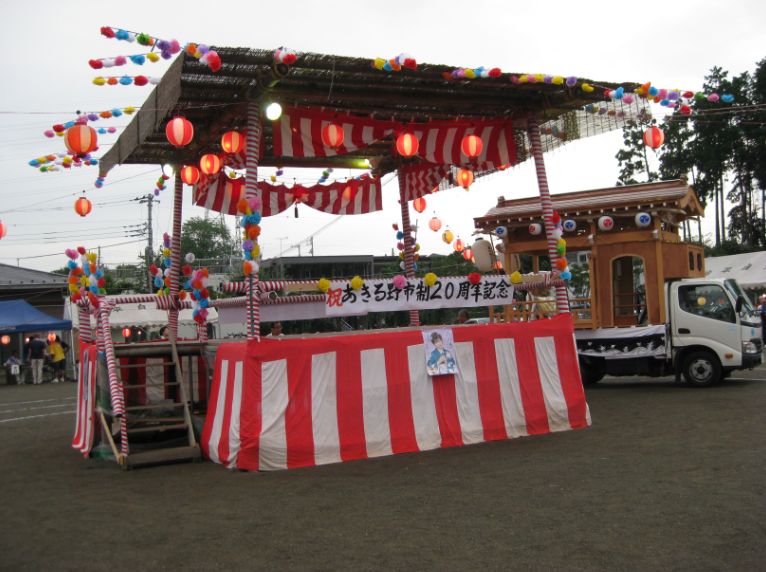 やぐらはこの様に出来ています。 歌いながら、みんなに握手して廻る歌手。