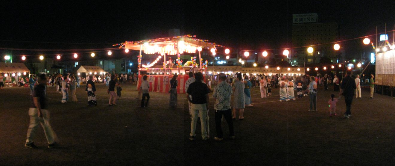 盆踊り会場 東西70m x 南北100m ほどの広さです。